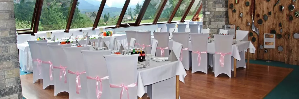 Wybierając salę weselną zawracajmy uwagę na to, czy preferowane przez nas miejsce gwarantuje nam kompleksowość działań, a tym samym odciąży nas z wielu punktów weselnej listy przygotowań. Zweryfikujmy, czy obiekt ten jest w stanie pomóc nam w rezerwacji terminu ślubu w pobliskich kościołach lub zaproszeniu urzędnika stanu cywilnego udzielającego ślubu w plenerze. Istotne również to, czy otrzymamy pomoc w zakresie organizacji oprawy muzycznej oraz czy oferta uwzględnia atrakcje dodatkowe, takie jak pokazy barmańskie, gotowanie na żywo, wypuszczenie gołębi czy lampionów. Nie zapominajmy też o logistyce – samochodzie czy bryczce dla państwa młodych oraz autokarach lub taksówkach dla gości weselnych. Jak pokazuje praktyka, Hotel Tatry jest w stanie odciążyć nas ze wszystkich wspomnianych aktywności. Ale to nie wszystko. Obiekt zapewnia także oprawę fotograficzną i wideo, a dekoracja kwiatowa oferowana przez hotel obejmuje nie tylko salę bankietową, ale i kościół. Obiekt zatroszczy się również o zaproszenia ślubne i papeterię, a także o obrączki, fryzury i makijaże. Miłośnikom regionalnych klimatów zapewni zabawy regionalne oraz tradycyjne obyczaje i obrzędy, takie jak pytoce, śpasy, ocepiny i przyśpiewki. A to, co rozkocha podniebienia gości, to wyjątkowe menu regionalne.