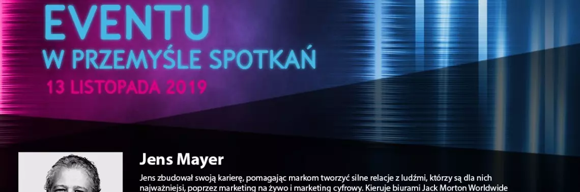 Wielu kreatywnych z agencji eventowych cieszy się na myśl o spotkaniu Jensa Meyera- CEO Jack Morton Worldwide. Jest to też idealny prelegent, który może zaskoczyć wielu uczestników Event Biznes, którzy szukają innowacyjnych rozwiązań eventowych, wspierających komunikację marketingową ich produktu lub usługi.