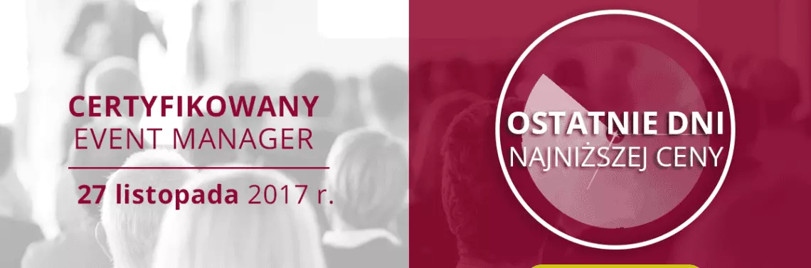Zarejestruj się już dziś: www.event-manager.edu.pl i zaoszczędź ponad 300zł! Promocja trwa do 31 sierpnia.