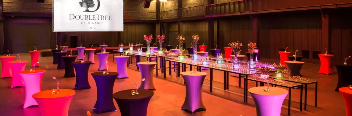 Łódzki Hotel powstał w miejscu dawnej Wytwórni Filmów Fabularnych w Łodzi (WFF). Można więc śmiało powiedzieć, że miejsce to już od końca lat czterdziestych XX wieku słynęło z organizowania przedsięwzięć na dużą i niespotykaną nigdzie wcześniej skalę. Mimo, że charakter eventów nieco się zmienił, DoubleTree by Hilton Łódź przez cały czas korzysta ze swoich ogromnych możliwości. Dzięki bezpośredniemu połączeniu z halami dawnej WFF znajduje się tutaj niemal 5 tys. m2 powierzchni, która idealnie nadaje się do organizacji konferencji, targów czy bankietów. Jest to powierzchnia niezwykle plastyczna, gotowa przyjąć i zrealizować wszelkie pomysły organizatorów. Przestronne, wysokie na nawet 16 metrów hale wyposażone zostały w doskonałą infrastrukturę eventową. Udogodnienia obejmują również między innymi możliwość wjazdu samochodem bezpośrednio do hal, udźwig 250 kilogramów na m2, mobilną scenę i widownię, oświetlenie i nagłośnienie najwyższej klasy. Wszystko to zostało wyposażone w obsługę na poziomie 4-gwiazdkowego hotelu i bogate menu cateringowe. Warto o nim wspomnieć, ponieważ wszystkie dania zostają przygotowane na miejscu przez utalentowanych i doświadczonych szefów kuchni.