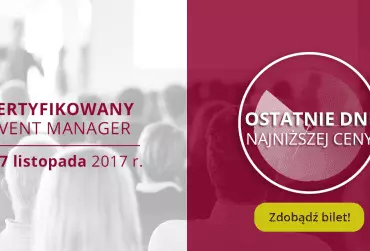 To ostatnia okazja, by kupić najtańszą wejściówkę na Ogólnopolską Konferencję Szkoleniową Event Menedżerów. Nie czekajcie i kupcie bilet w promocyjnej cenie! Widzimy się 27 listopada w Multikinie Złote Tarasy.