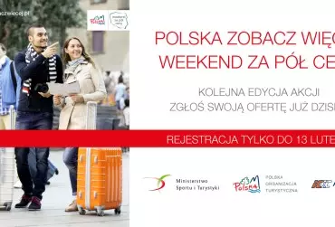 Rusza czwarta edycja akcji „Polska zobacz więcej – weekend za pół ceny” organizowanej przez Polską Organizację Turystyczną we współpracy z Ministerstwem Sportu i Turystyki. Właśnie rozpoczęła się rekrutacja partnerów branżowych. Finał akcji zaplanowano na weekend od 9 do 11 marca.